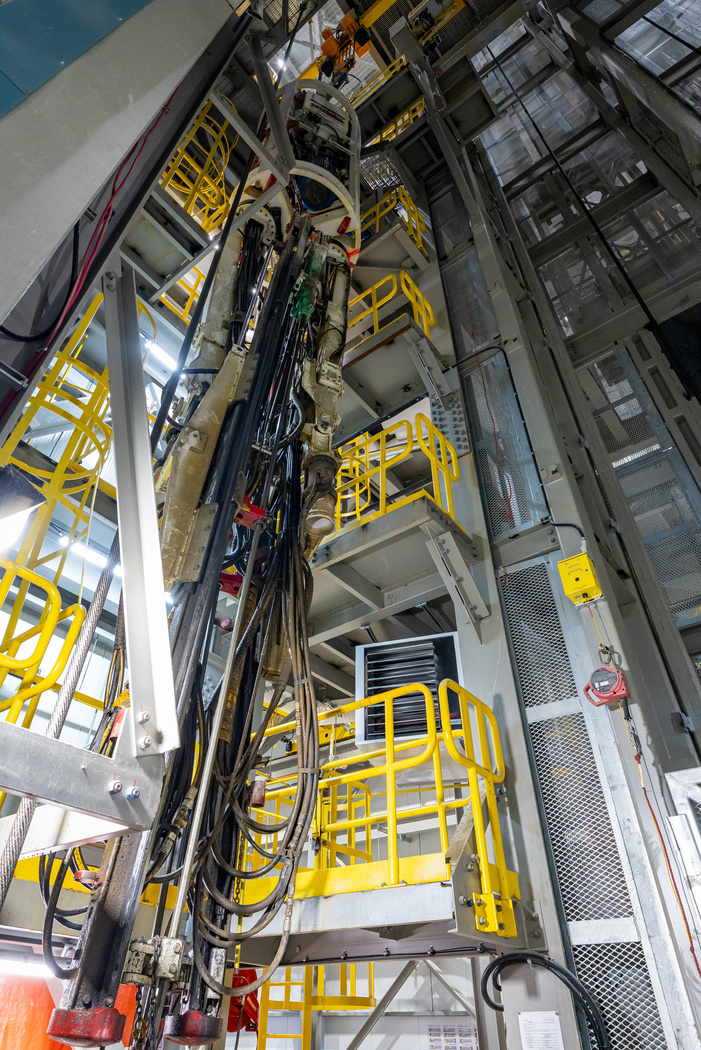While the headframe structure and maintenance shop are complete, the sinking dome is currently being finalized. Hoist systems are fully commissioned and operational.