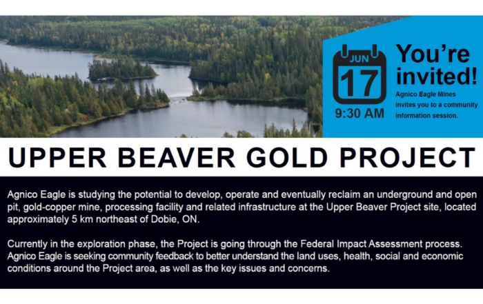 For information and the latest updates from the IAAC on the Impact Assessment process of the Upper Beaver Gold Project, visit iaac-aeic.gc.ca opens a new window.