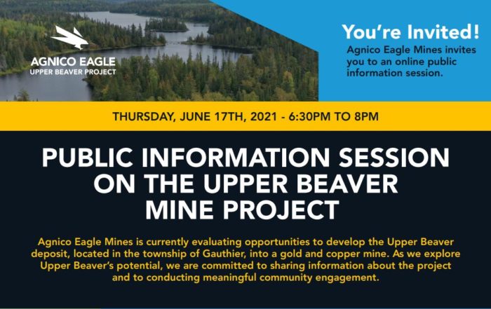 For information and the latest updates from the IAAC on the Impact Assessment process of the Upper Beaver Gold Project, visit iaac-aeic.gc.ca opens a new window.