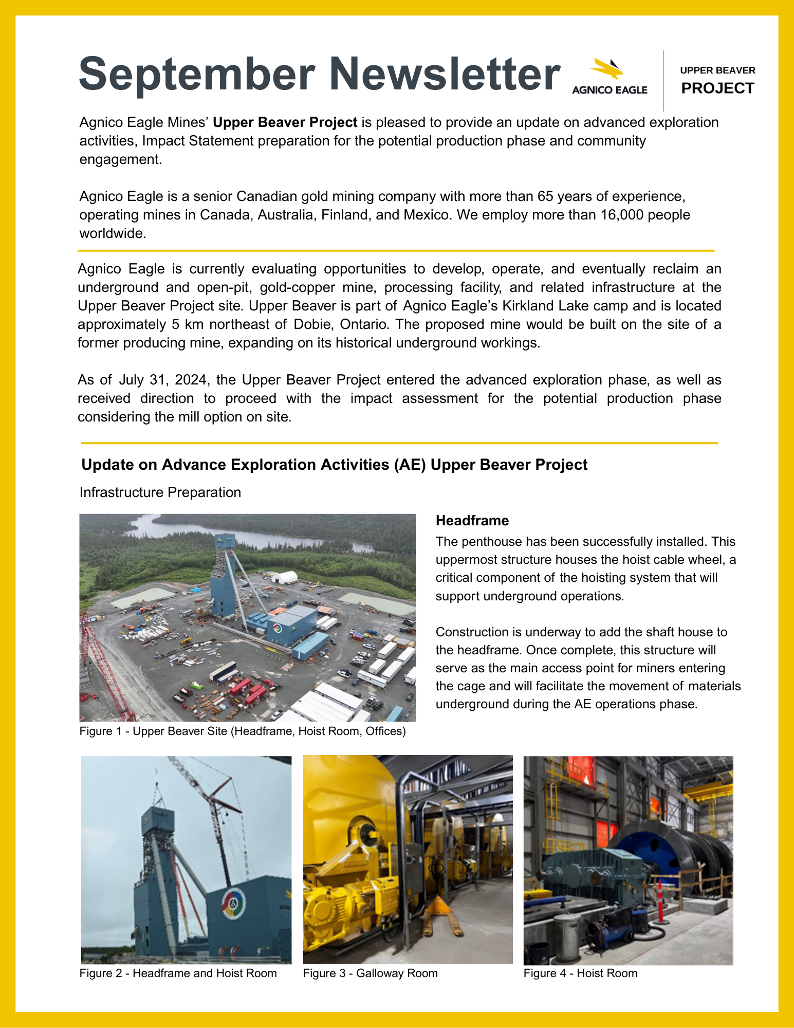 May 2025 - Upper Beaver Virtual Workshop Invitation Dear Community Members, The Agnico Eagle Upper Beaver Project invites you to participate in a Virtual Workshop on May 21, 2025, from 6:00 p.m. to 8:30 p.m. (ET) via Zoom. The